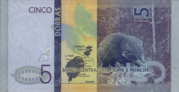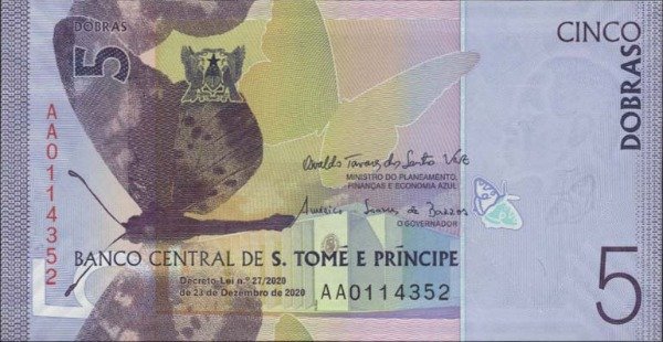 Santo Tome y Principe [P 76] 5 Dobras 2020. Mariposa. Rev: Musaraña. UNC