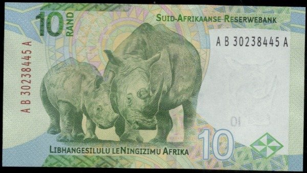 SUDAFRICA [P148] 10 Rand (2023) Mandela. Rinocerontes. UNC
