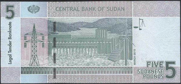 Sudan [P 72c] 5 Libra 2015. Satelite. Represa. UNC