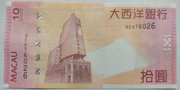 MACAO [P 80] 10 Patacas 2010. Bco Nacional Ultramarino. UNC
