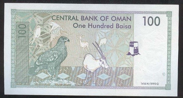 Oman [P 31] 100 Baisa 1995. Rev: Fauna. UNC