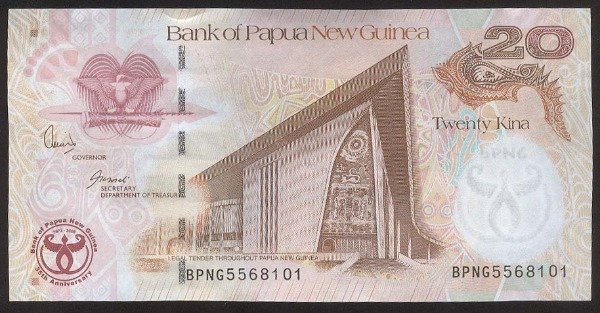 Papua Nueva Guinea [P 36a] 20 Kina (2008). 35 Aniv. Banco. UNC