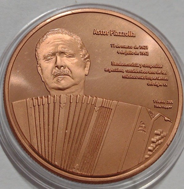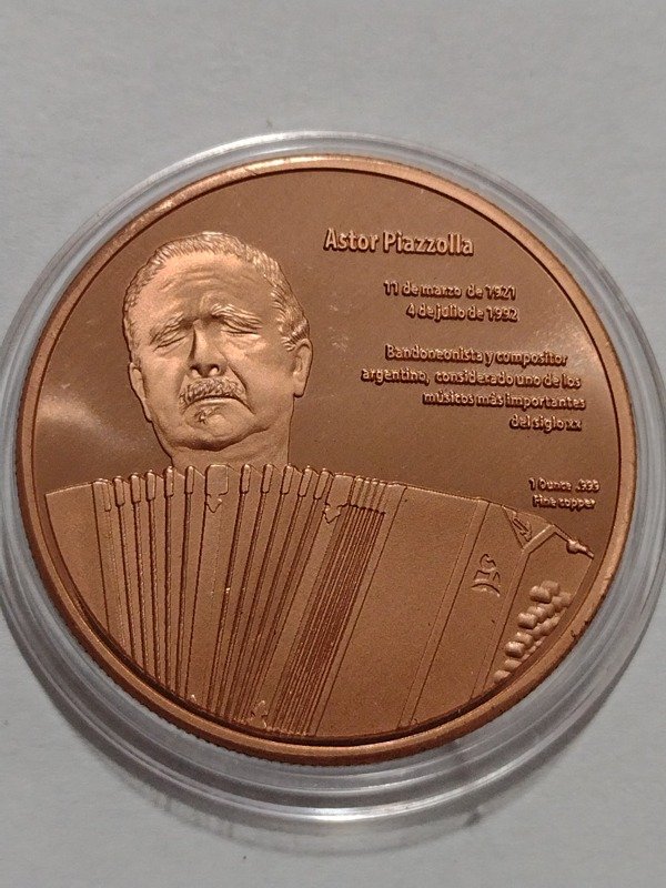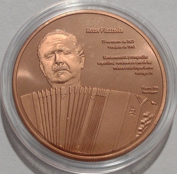 Diámetro 39mm, peso 30,5 gr. Cobre 999. Acuñación 400 piezas