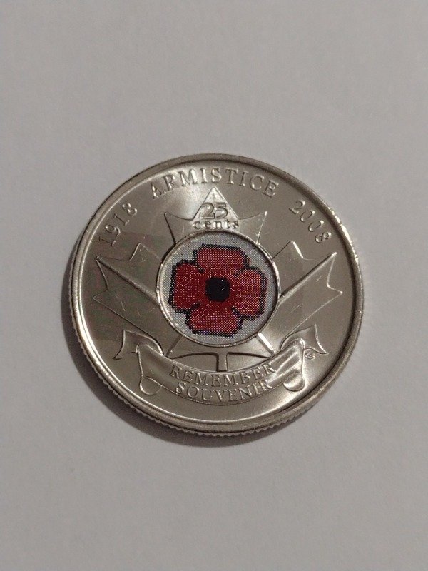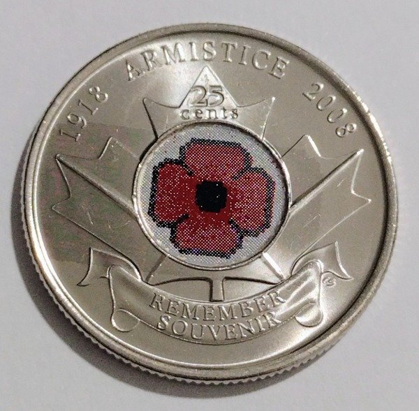 Canadá 25 cents 2008. 90 años fin primera guerra mundial