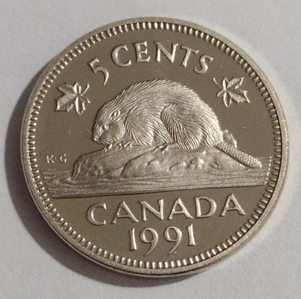 Canadá 5 cents 1991 acabado proof