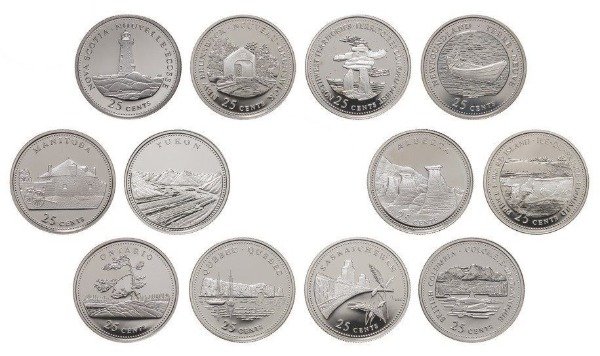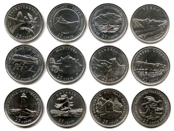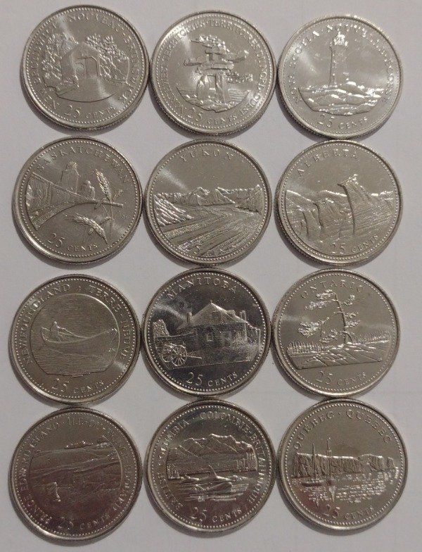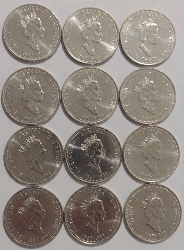 Canadá lote de 12 monedas 25 cents 1992 (125 años de la Confederación)