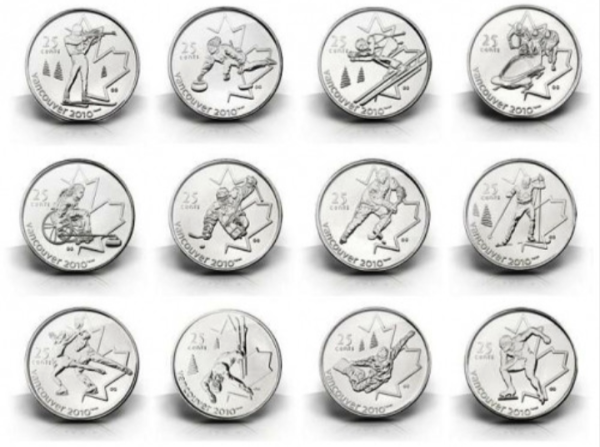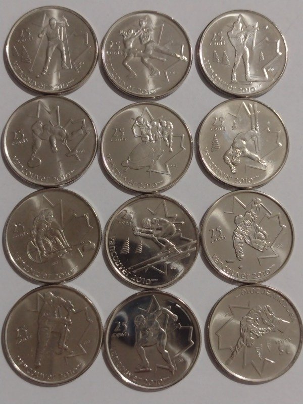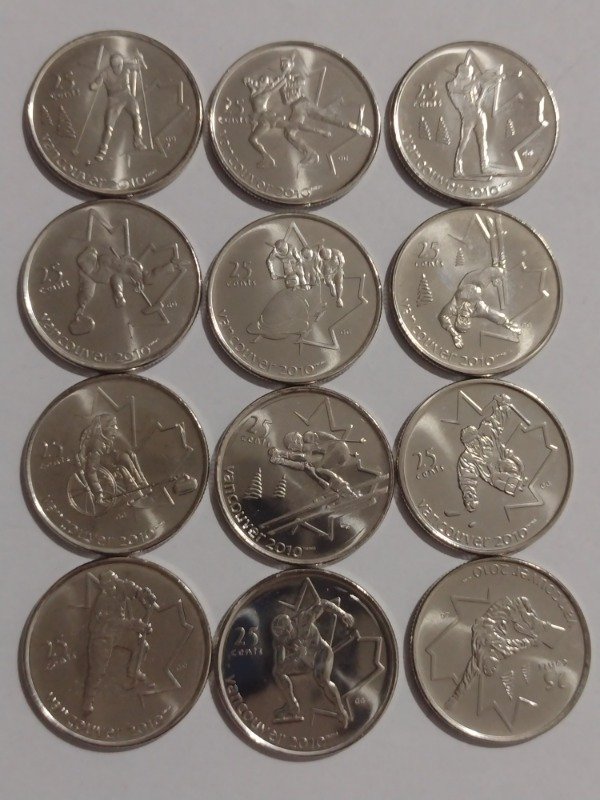 Canadá lote de 12 monedas 25 cents juegos de Vancouver 2010