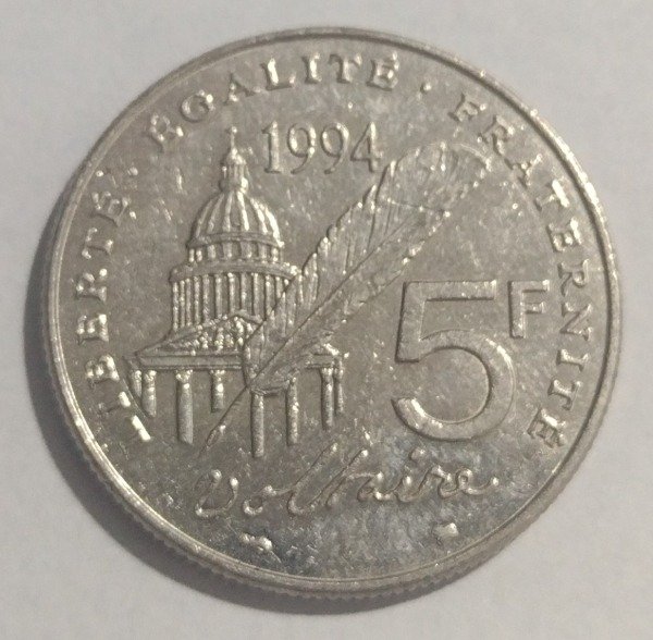 Francia 5 Francos 1994 Voltaire KM# 1063